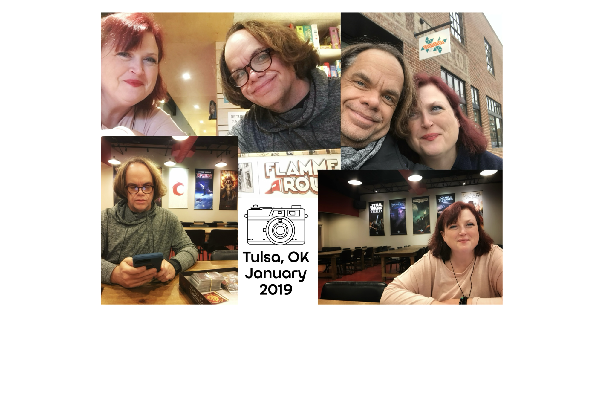 The next memory from today deals with another fun date thing Michaela and I did. We traveled quite a bit for her work. We traveled all of the USA because of it, but in 2019 we went to Tulsa, Oklahoma. Michaela and I became board game obsessed in late 2016. When we visited other towns, we always looked up to see if they had board game cafes or at least board game stores so that we could have some quality down time from work and traveling. Tulsa has this great place called Shuffles. It showed we went there in 2019.