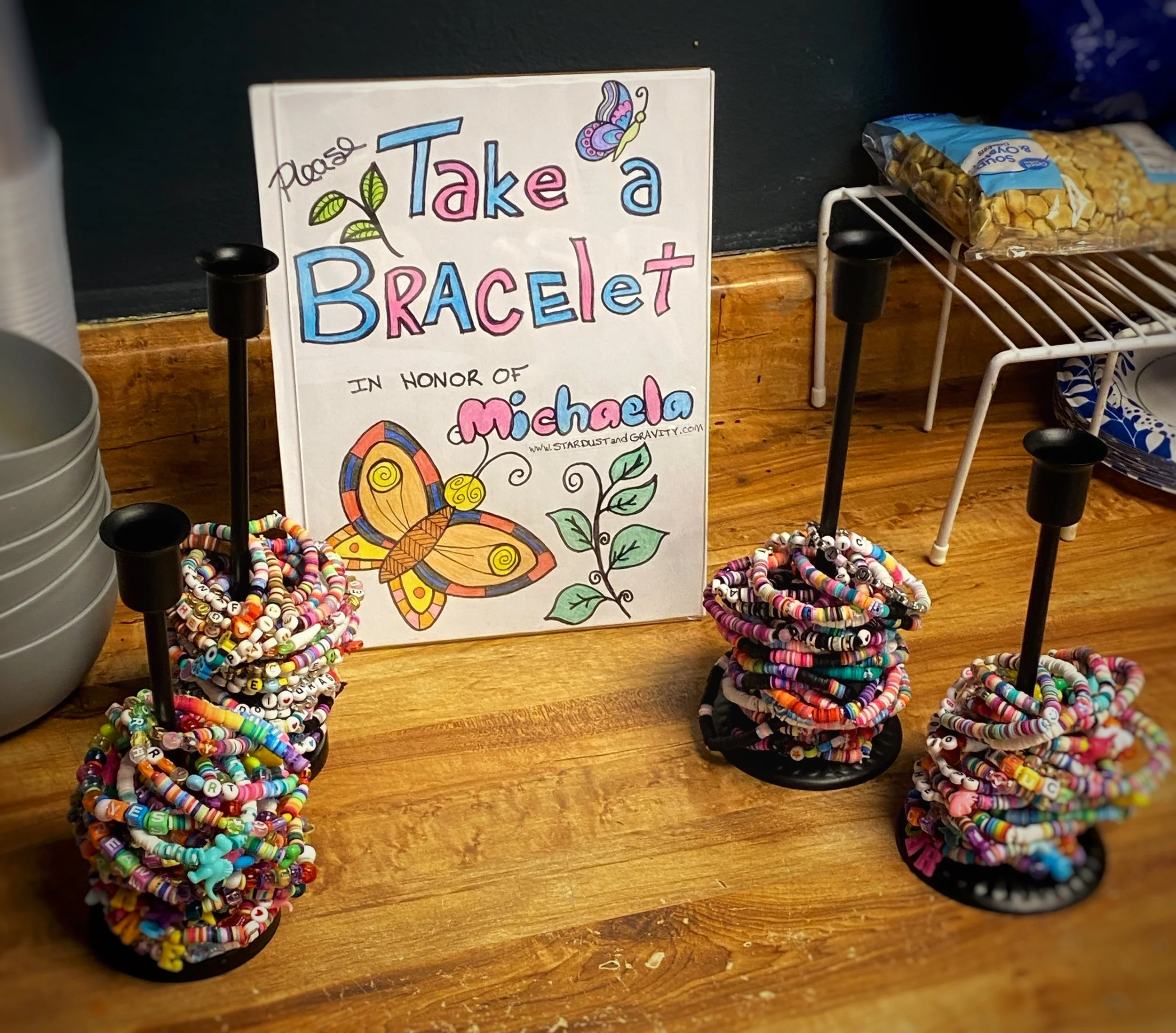 After having about 60 bracelet, I decided I wanted 100 bracelets and to bring them to our local LGBTQ center, on December 6th for Michaela’s birthday.
